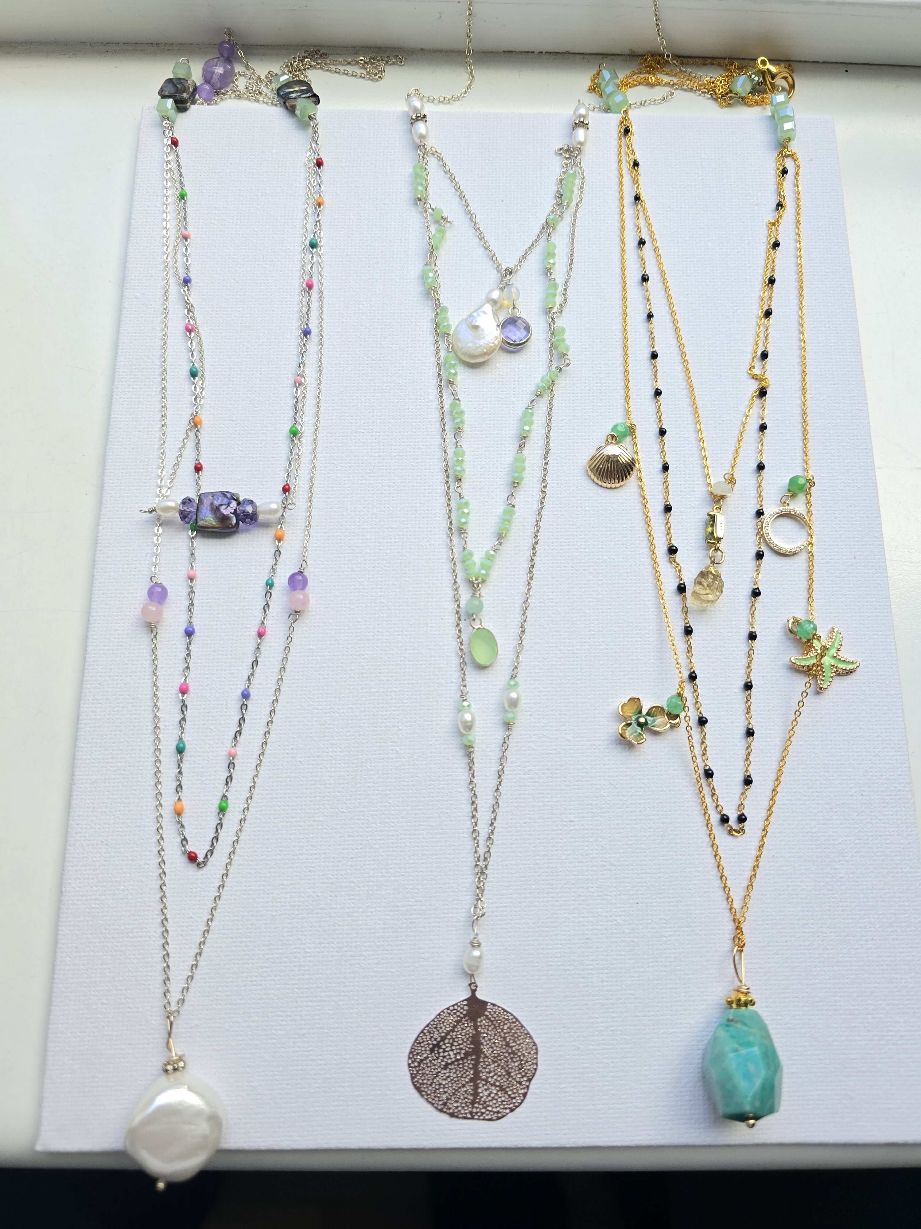 Smukke kreoler med guld og grønne delika perler. Størrelse 2 cm.