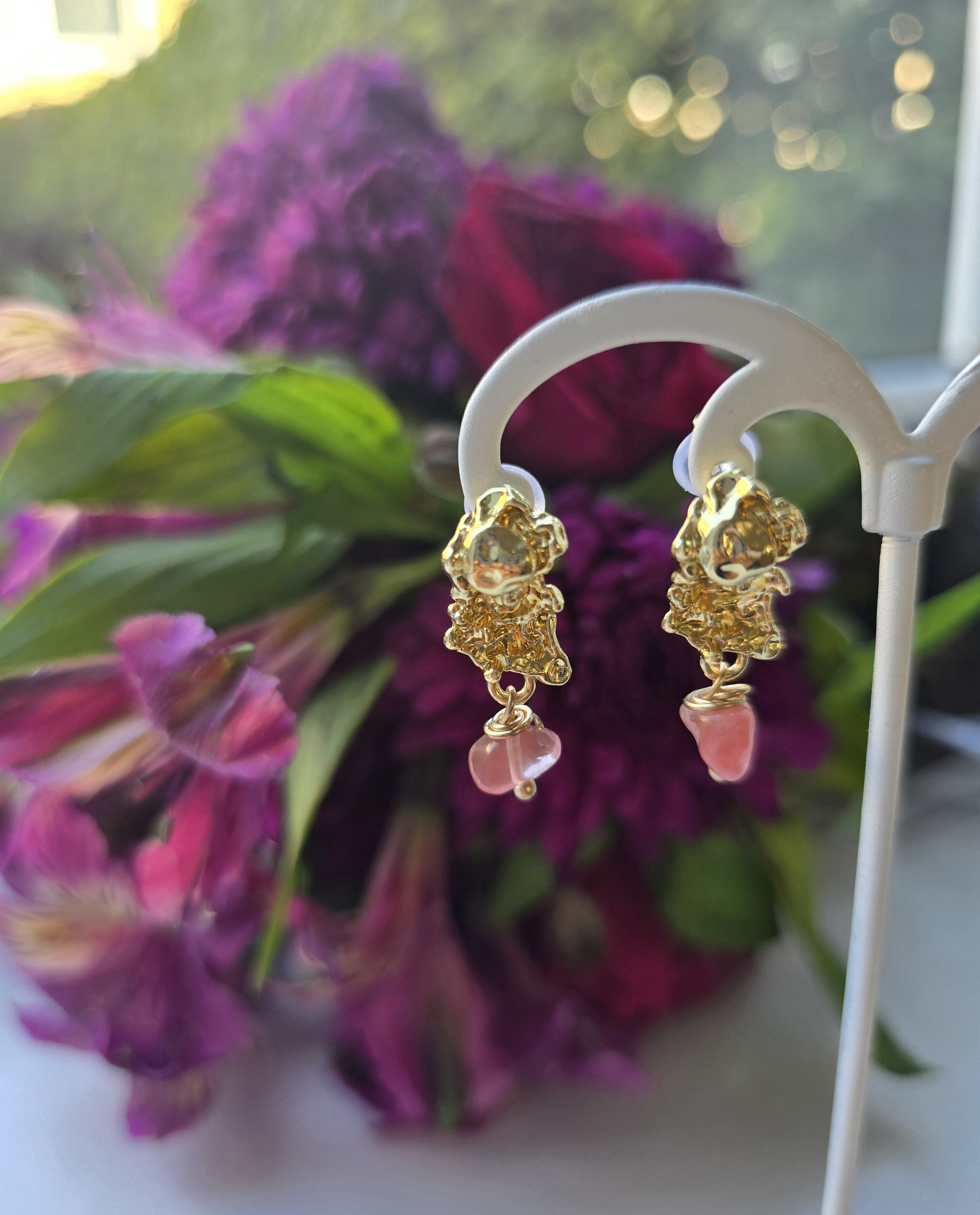 Øreringe med farvestrålende sten og vedhæng er til boheme kvinden eller den farverige sigøjner kvinde. De måler 3,5 cm og er I forgyldt sølv.