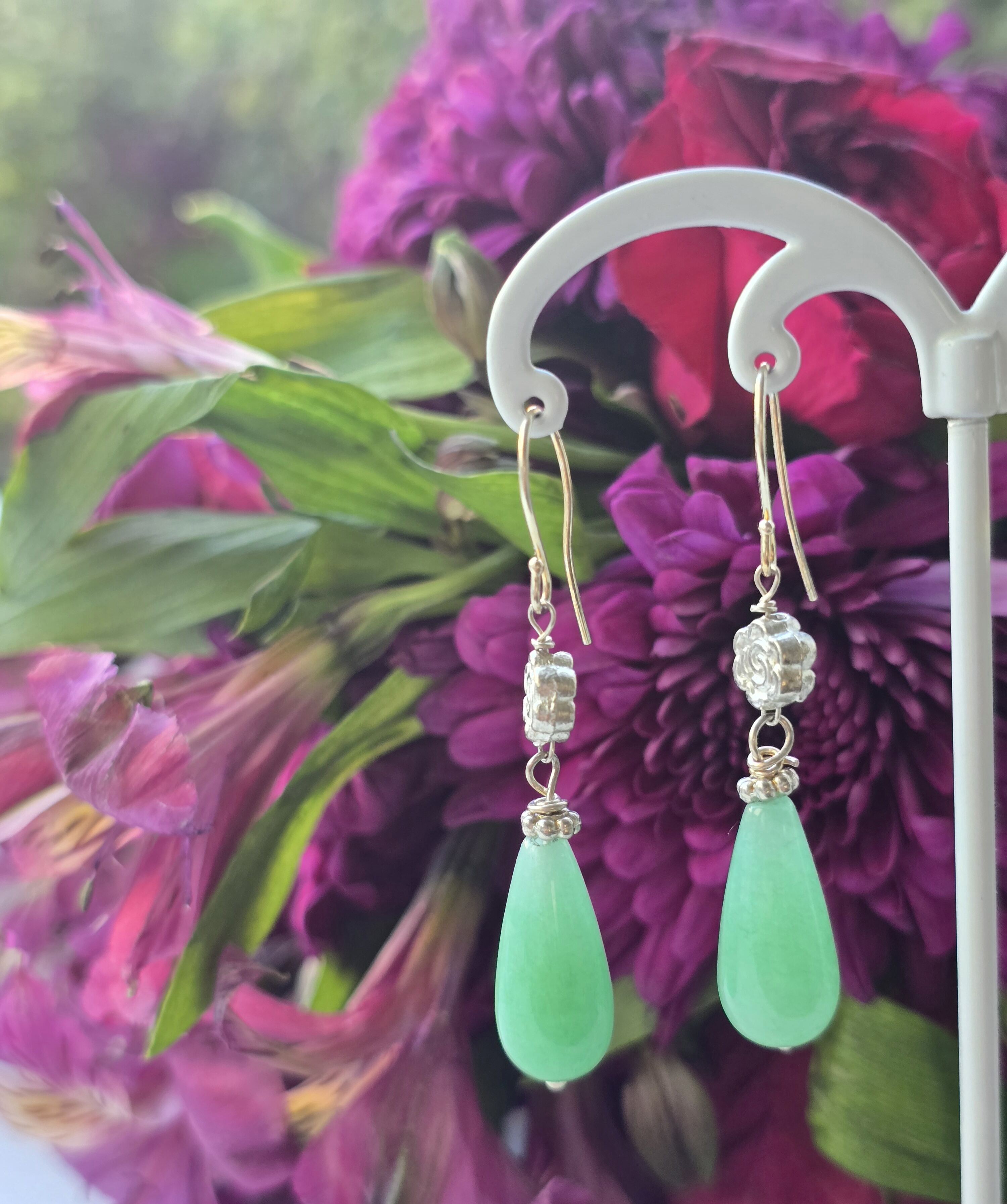 Øreringe med rosakvarts og lilla swarovski krystal er enkle og smukke. De er unikke og måler 2,5 cm i forgyldt sølv.