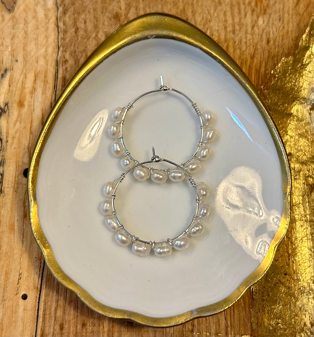 Sølv: Øreringe m. ferskvandsperler