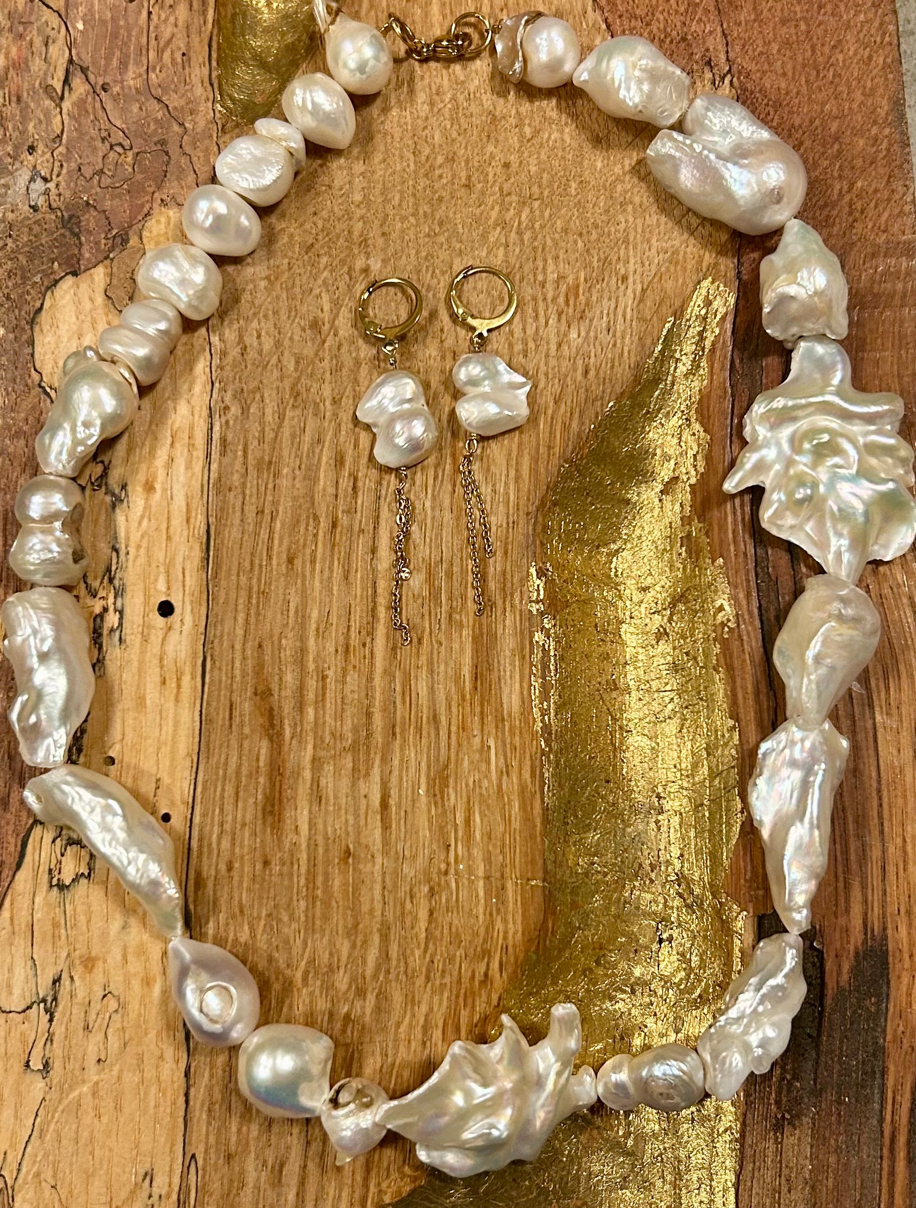 Polymer clay necklace in a beige, brown, and black leopard pattern, elegantly set on gold-plated stainless steel hoops — bold, refined, and timeless.